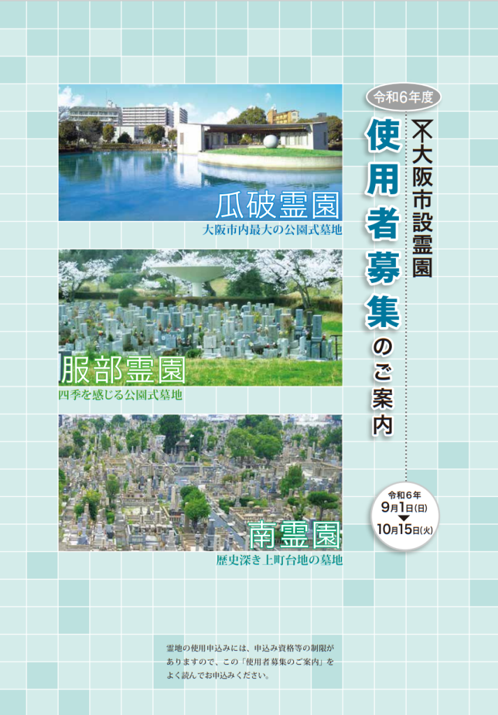 大阪市設霊園(南霊園・瓜破霊園・服部霊園)使用者募集開始のお知らせ