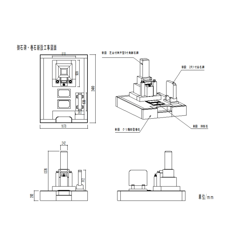 基礎工事 → 巻石工事 → 納骨所工事 → 墓石工事の順に現場作業を進めていきます。同時に彫刻作業も進めていきます。